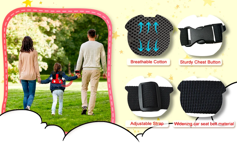 The toddler leash backpack chooses a bright red color so that you can spot your child at a glance in a crowded crowd, making it difficult for children using this toddler harness to lose.